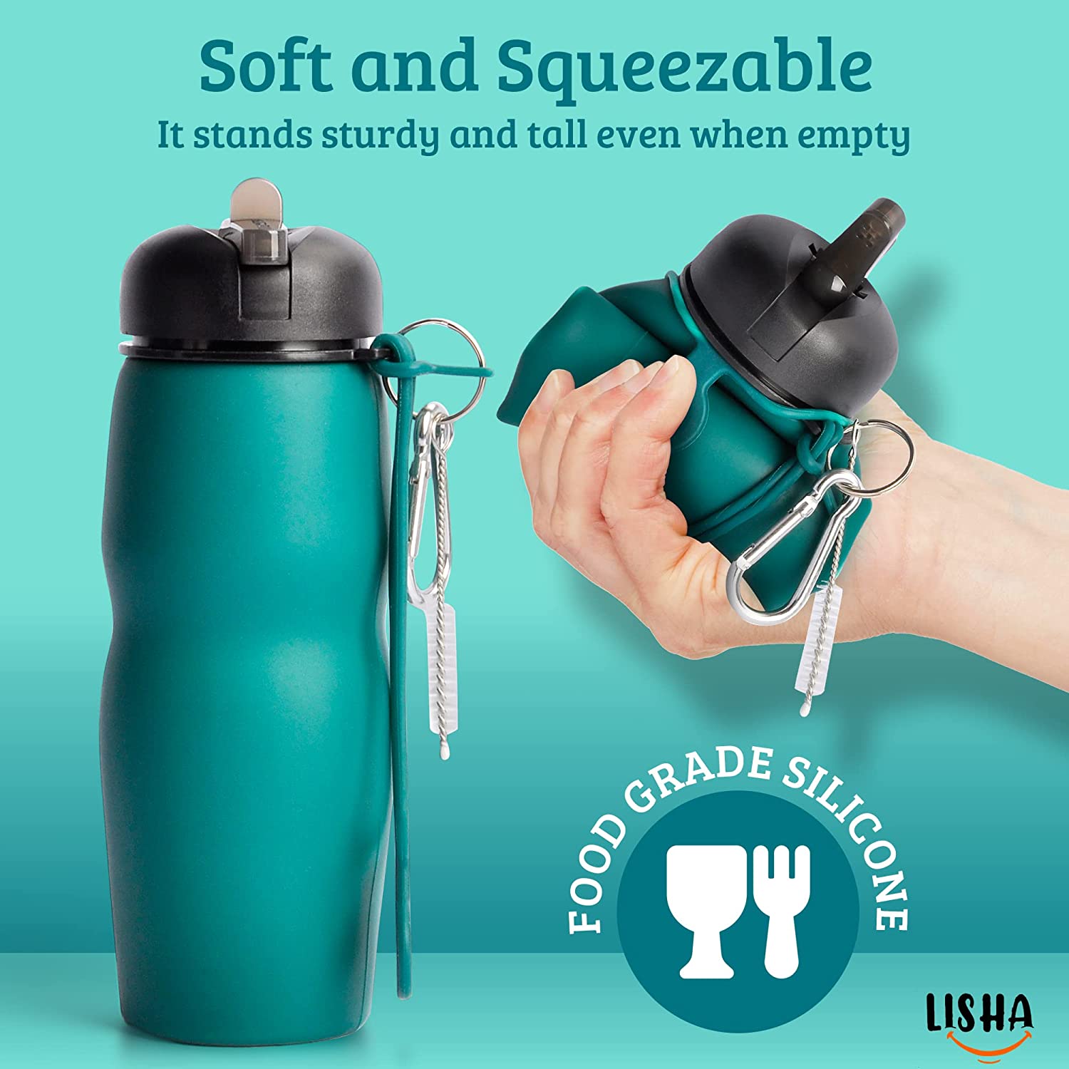 • SOFT, SQUEEZABLE food-grade silicone and a flip-straw cap make the Lisha Portable Bidet for travel easy to use in an airport bathroom or while camping. It stands sturdy and tall even when empty.