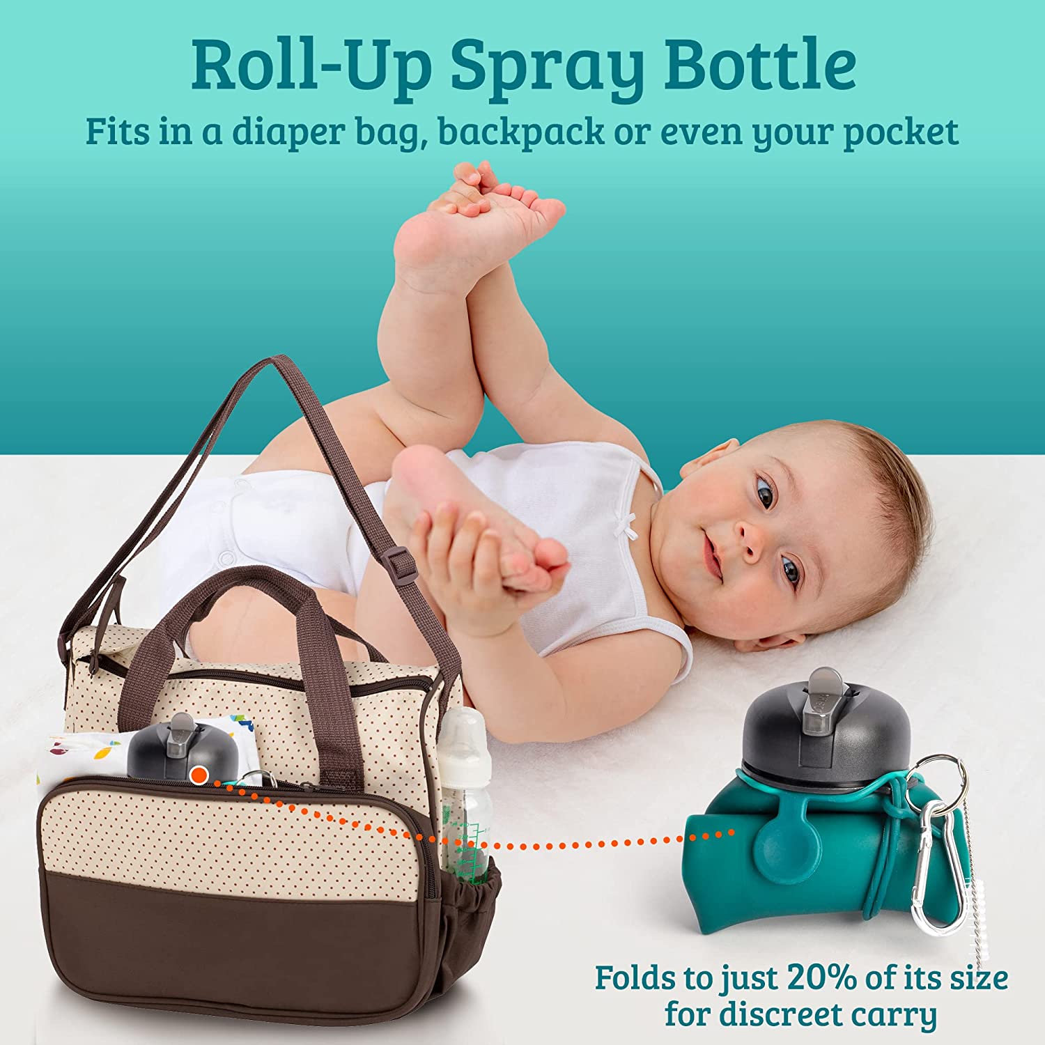 • ROLL-UP PERI BOTTLE for feminine care and postpartum recovery fits in a diaper bag, backpack or even your purse. Our portable bidet for women folds to just 20% of its size for discreet carry.