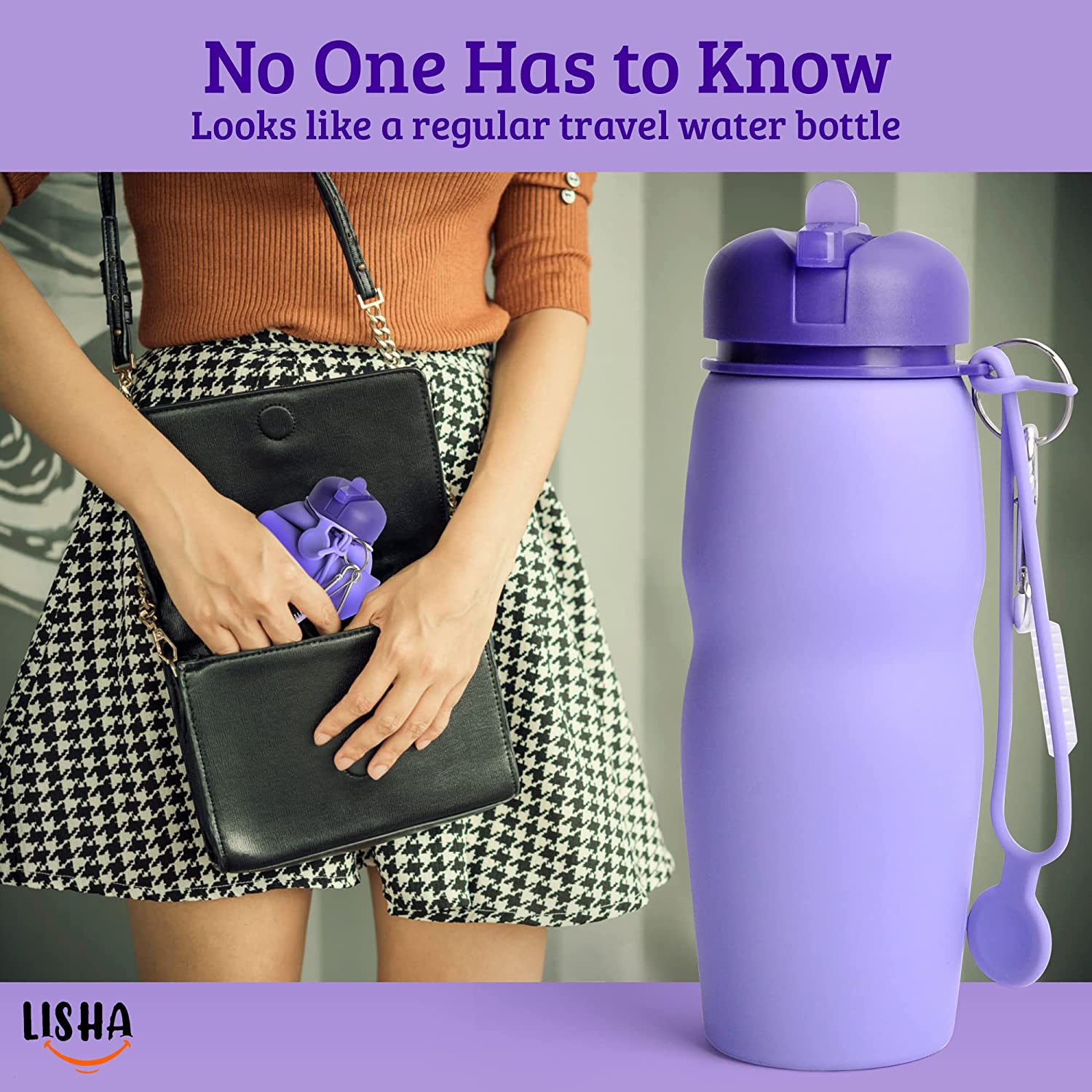 NO ONE HAS TO KNOW that you use a perineal bidet bottle for personal care. It has none of the tell-tale looks of other bidets. Instead, the Lisha Peri Bottle looks like a regular travel water bottle.