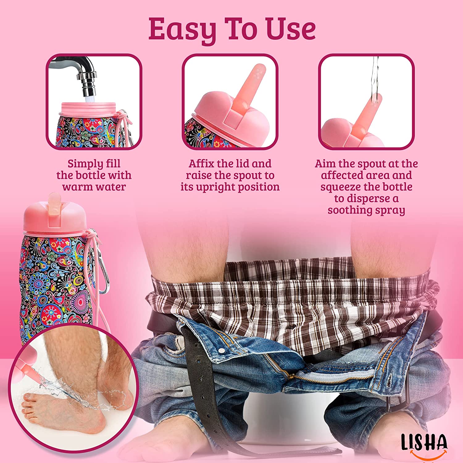 • NO ONE HAS TO KNOW that you use a perineal bidet bottle for personal care. It has none of the tell-tale looks of other bidets. Instead, the Lisha Peri Bottle looks like a regular travel water bottle.