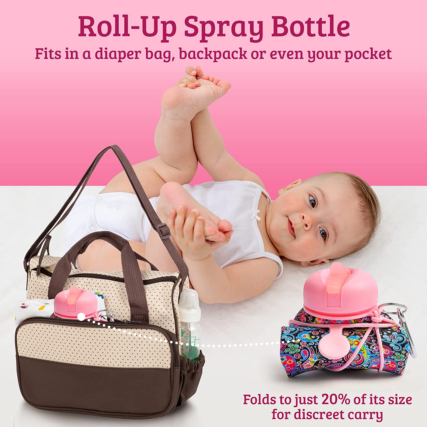 • ROLL-UP PERI BOTTLE for feminine care and postpartum recovery fits in a diaper bag, backpack or even your purse. Our portable bidet for women folds to just 20% of its size for discreet carry.